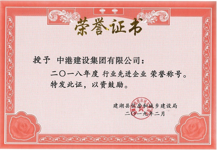中港建設(shè)集團(tuán)有限公司榮獲2018年度建湖住建系統(tǒng)“行業(yè)先進(jìn)企業(yè)”