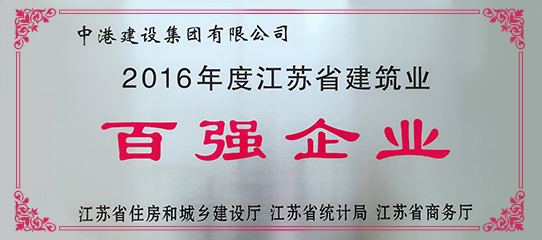 中港建設(shè)集團(tuán)有限公司榮獲 “2016年度江蘇省建筑業(yè)百強(qiáng)企業(yè)”榮譽(yù)稱號